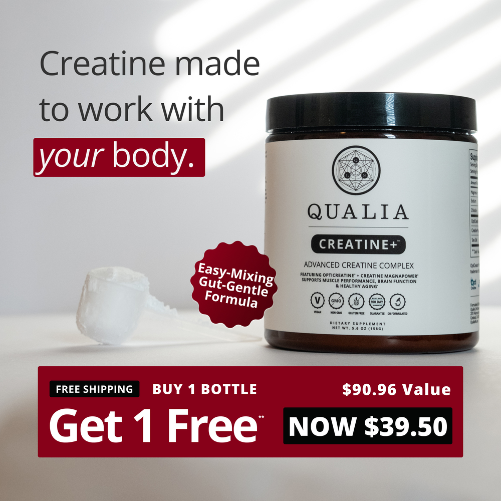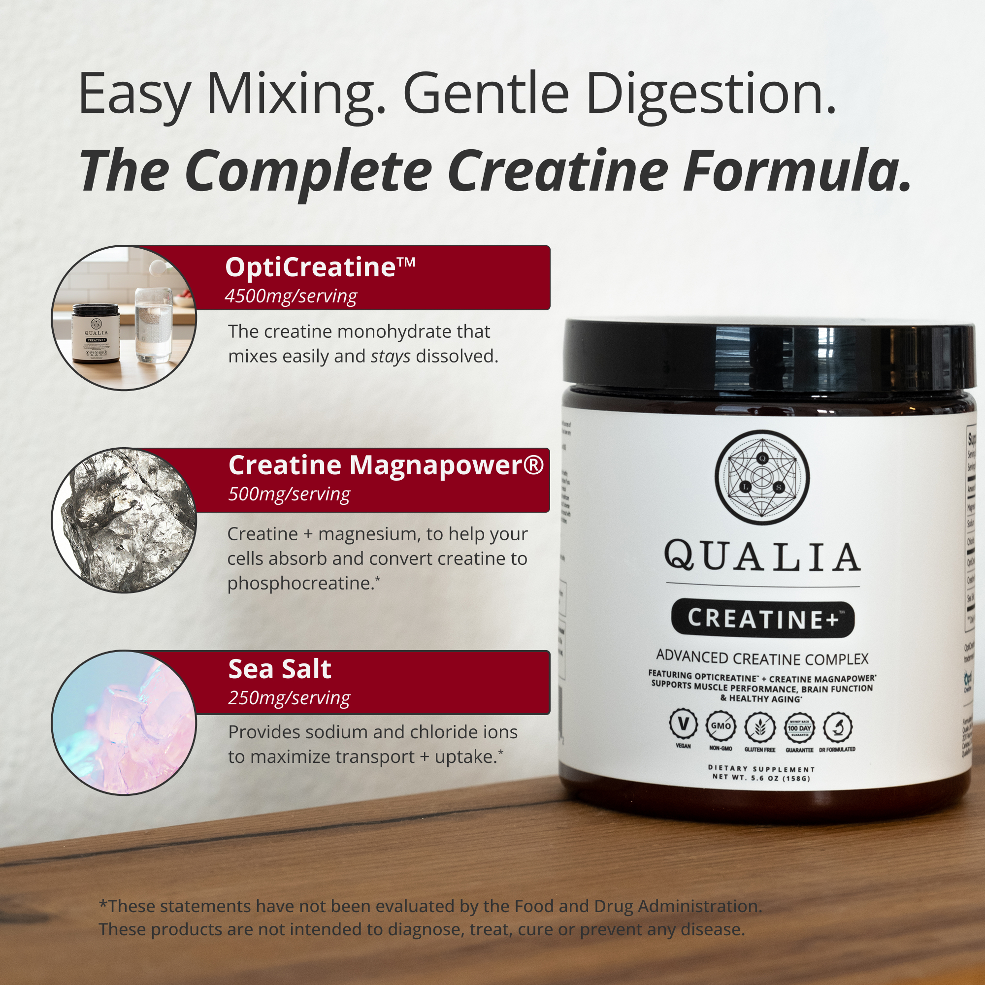 Qualia Creatine+ is creatine at its strongest: two advanced forms, built for faster absorption and deeper cellular impact.