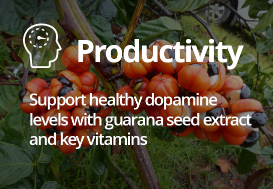 Guarana is a caffeine-containing plant native to the Amazon, where it was used to stay awake longer and support brain performance. Similar to other caffeine-containing plants, it promotes activity and energy metabolism in the brain. It also indirectly affects the release of neurotransmitters like dopamine, norepinephrine, and serotonin, which are involved in alertness, feelings of energy, mood, and motivation.*