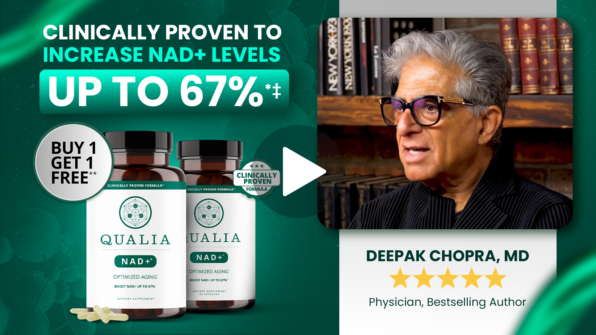 ‡ Double-blind, placebo-controlled studies have clinically proven that Qualia NAD+ increases NAD+ levels by as much as 67%. Full Study Results Here