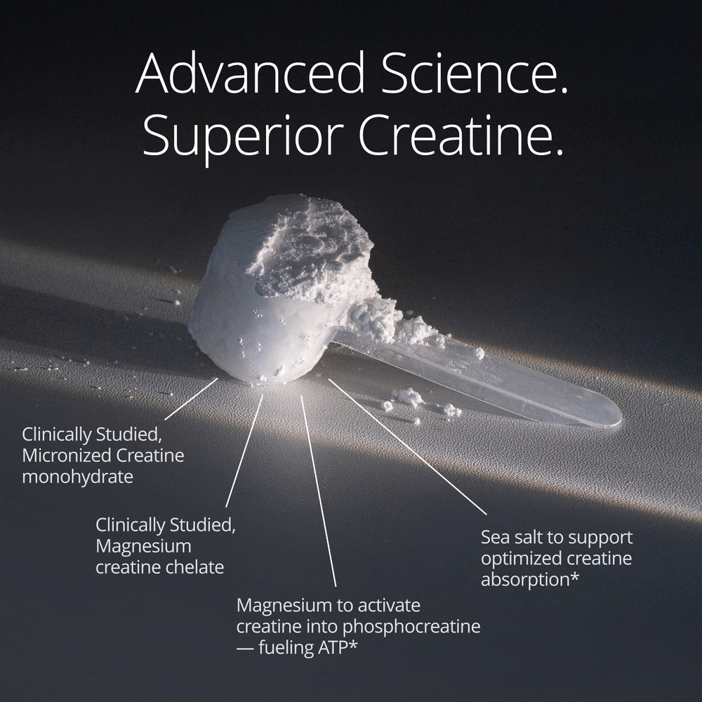 Each serving provides 5 grams of creatine from two premium sources—OptiCreatine™ (creatine monohydrate) and Creatine MagnaPower® (magnesium creatine chelate)—to help fuel active brain and muscle cells. A touch of sea salt is included to further support creatine absorption and transport into cells.*