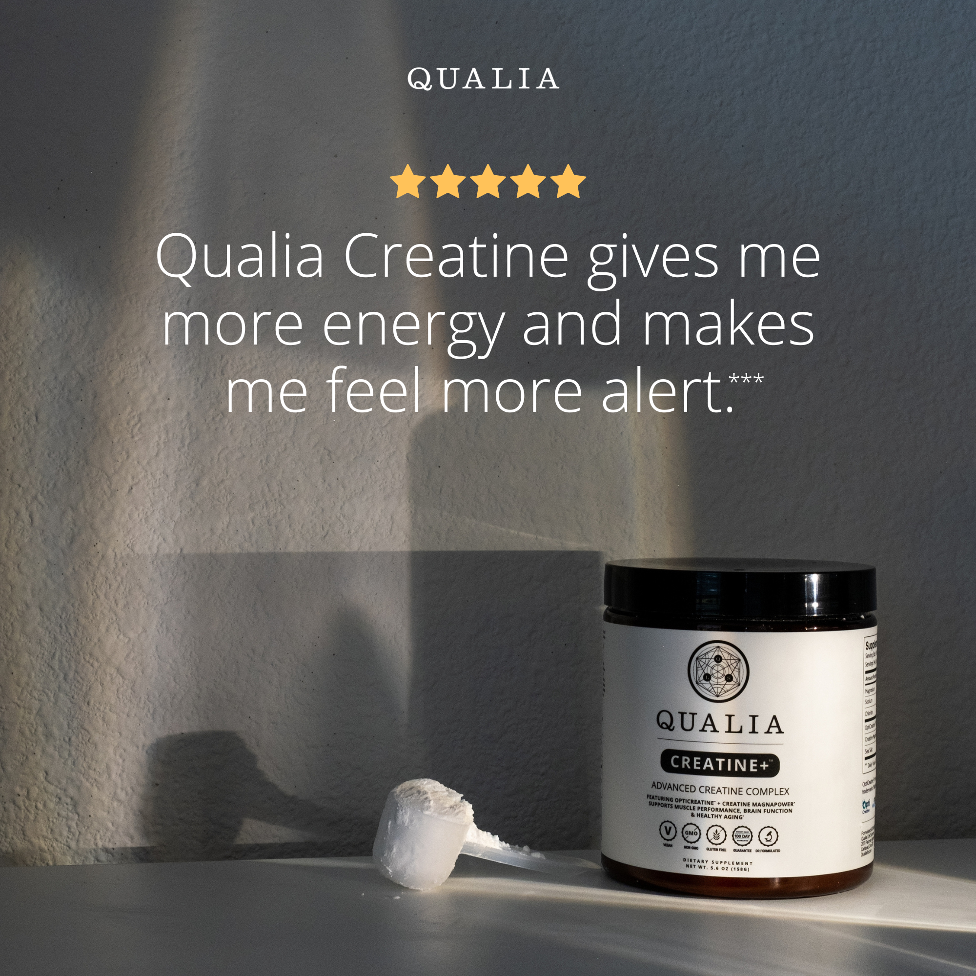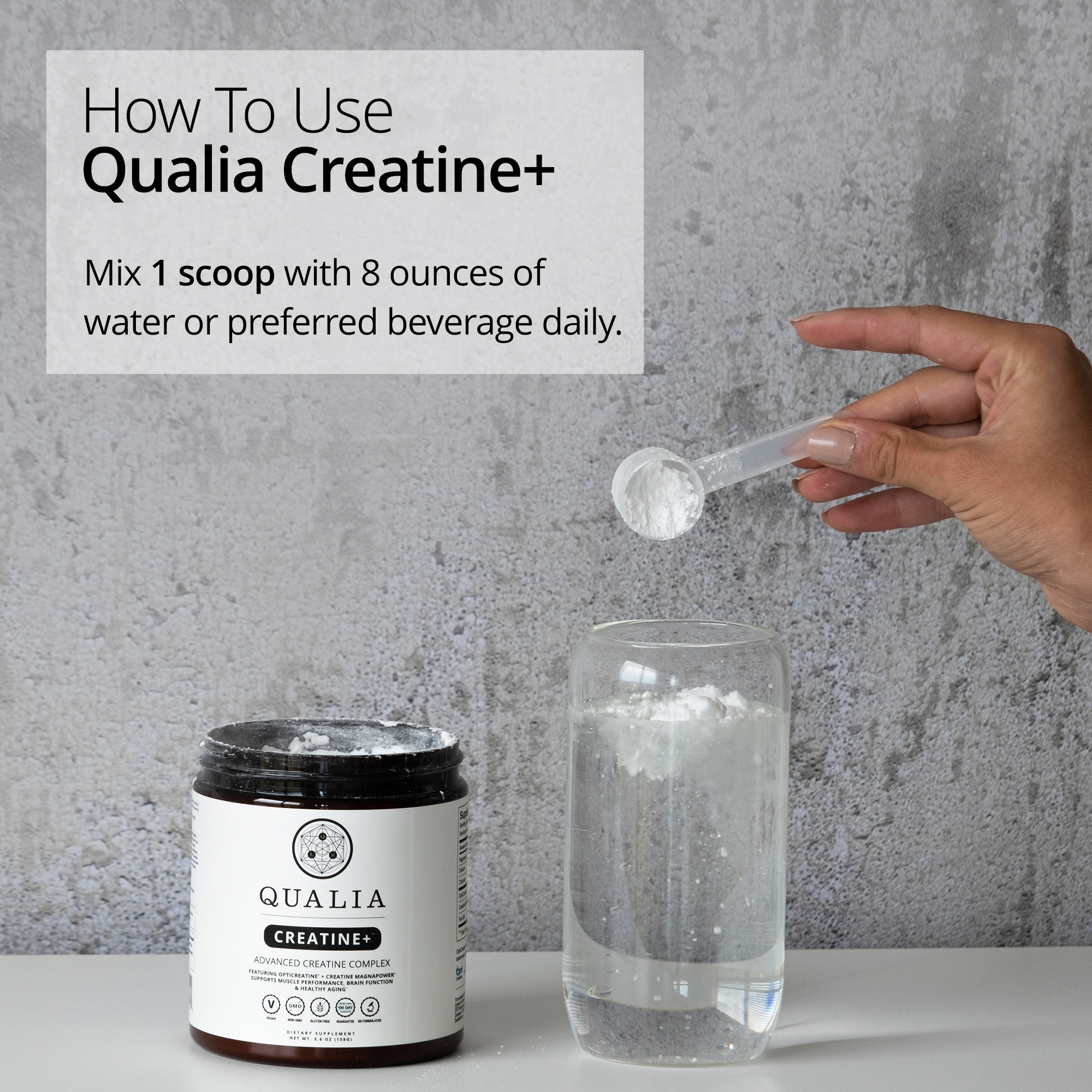 Both Creatine MagnaPower® and OptiCreatine™ creatine monohydrate are clinically studied forms of creatine. Qualia Creatine+ is also vegan, non-GMO, gluten-free, and 3rd party tested to ensure the highest standards.