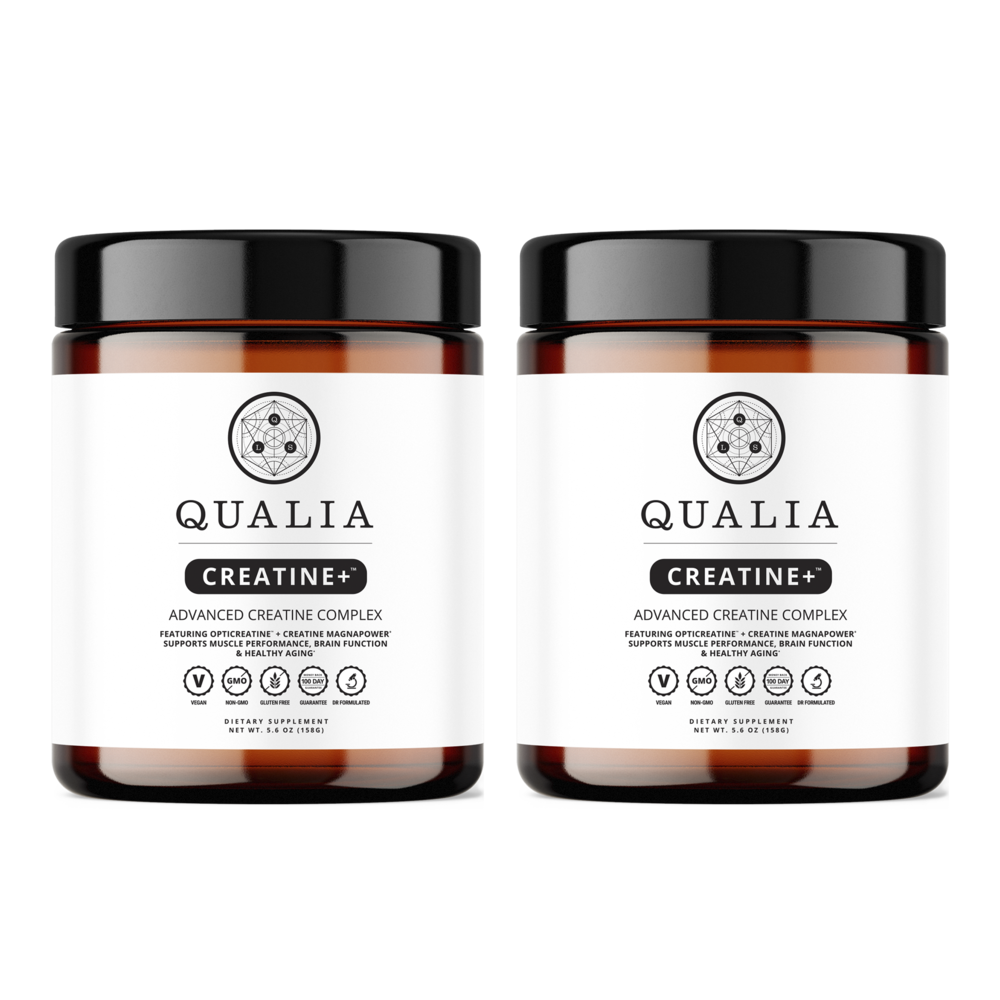 Qualia Creatine+ combines two premium, clinically studied creatine forms in a highly absorbable, doctor-formulated blend that elevates creatine’s scientific potential for all of the following: